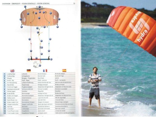 Крило характеризується простотою пілотування. Повітряний змій миттєво виконує те, що ви йому скажете, у будь-якій ситуації. Повітряним змієм керують за допомогою планки (джойстика управління), як, наприклад, у повітряних зміїв з депауером. Завдяки HQ Hydra ми навчимося керувати крилом, дізнаємося, де генерується сила, і в майбутньому наші уроки можна використовувати, щоб без побоювання лазити на більших повітряних зміїв.