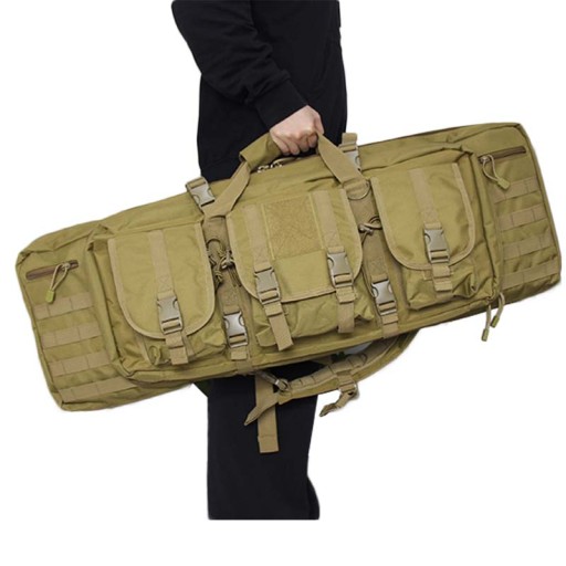 Крім того, в основне відділення вшита стінка, наповнена жорстким пінопластом, для розділення двох транспортованих гвинтівок.Зовні є три функціональні кишені для магазинів, спорядження та інших аксесуарів.