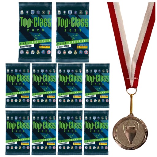 НАБІР X10 PANINI TOP CLASS 2023 ФУТБОЛЬНІ КАРТКИ 10 УПАКОВОК 80 КАРТОК + СРІБНА МЕДАЛЬ ЗІ СТРІЧКОЮ