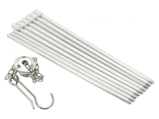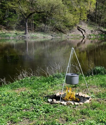 Практичний складаний штатив - ідеальне доповнення до газової плити та каміна. Він виготовлений з трьох складних ніжок з міцного алюмінію і гака, підвішеного на ланцюжку, загальною висотою в складеному стані 86 см. У складеному вигляді пристрій важить 460 г і має розміри 34 х 7 х 3,5 см, тому він не займає багато місця і ви можете мати його з собою де завгодно.