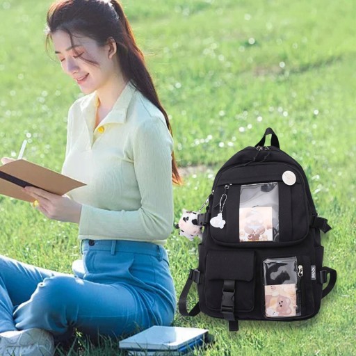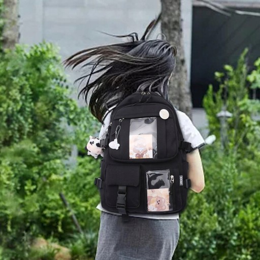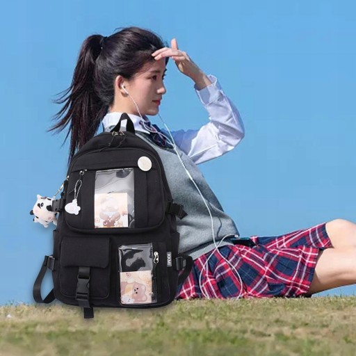 Рюкзак Kawaii Аніме Шкільний портфель Anti-Theft Жіноча дорожня сумка Girls Black
