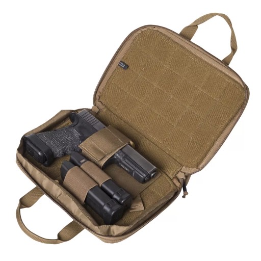 Гаманець Helikon Single Pistol Wallet — це чохол, призначений для зберігання одного пістолета та двох магазинів. Чохол виготовлений з дуже міцної 500D Cordura кольору койот. Стінки чохла посилені і оброблені поролоном, що забезпечує хороший захист переносимої зброї. Внутрішня сторона чохла вшита на липучку, в комплект входить універсальний пістолетний тримач і тримач для двох магазинів. Завдяки застібці на липучці ми можемо вільно налаштовувати розташування обладнання. Конструкція чохла була посилена шляхом прошивання його стрічкою, яка також служить ручкою для перенесення. Зовні липучки, що дозволяють персоналізувати.