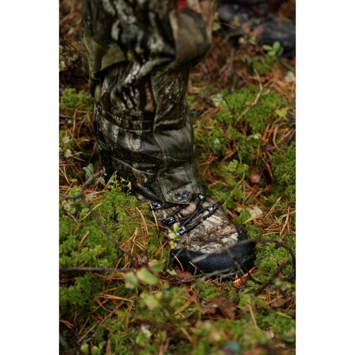 Черевики Harkila Moose Hunter GTX важать 717 грамів на черевик. Вони мають висоту 10 дюймів. Верх виготовлений з дихаючого міцного поліестеру з камуфляжним принтом Mossy Oak® Break-Up Country, а підошва виготовлена з відносно гнучкого матеріалу Vibram®, який забезпечує хороше зчеплення навіть на кам’янистих і крутих поверхнях. Підошви також мають видимий червоний сигнальний колір, який відповідає червоному камуфляжу серії Moose Hunter 2.0. Взуття Moose Hunter GTX має повністю водонепроникну мембрану GORE-TEX Performance Comfort.