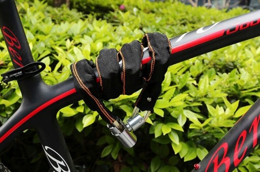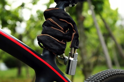 Захист для велосипеда з ланцюжка, обплетеного нейлоном. Оплетка захищає велосипед від стирання ланцюга.