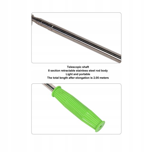 4. Телескопічний вал: цей ретривер для м’яча для гольфу має 8 секцій висувного вала з нержавіючої сталі. Загальна довжина після розкладання 205 см, а після усадки 40 см.
