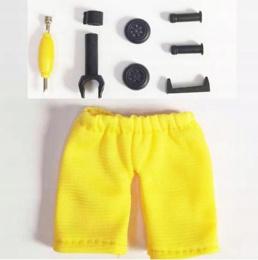 - Аксесуари: легкосплавний скутер (синій) + штани (жовті) + набір аксесуарів для розбирання (кольори деталей довільні)