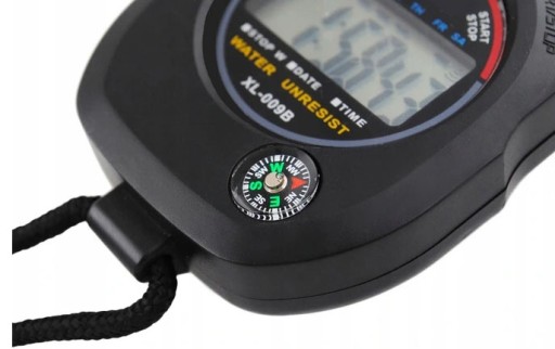 Цифровий секундомір також має вбудований компас, який є надзвичайно корисним гаджетом під час велосипедних та піших походів. Секундомір з компасом буде незамінний в горах або в лісі. Секундомір із компасом також містить корисну функцію будильника, годинника та календаря. Тому ми можемо встановити поточний час і дату в цифровому секундомірі, а також виміряти час і перевірити наше поточне положення відносно сторін світу на великому дисплеї. Надзвичайно функціональний цифровий секундомір - це корисний аксесуар, який завжди варто мати під рукою під час занять спортом або подорожей.