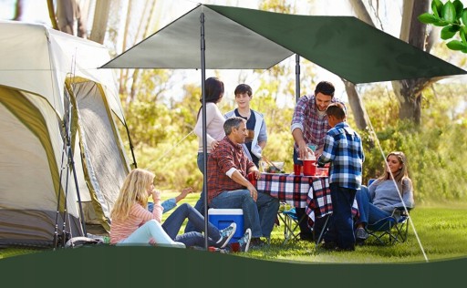 - Кемпінговий брезент можна легко встановити за лічені хвилини, не зав’язуючи вузлів.