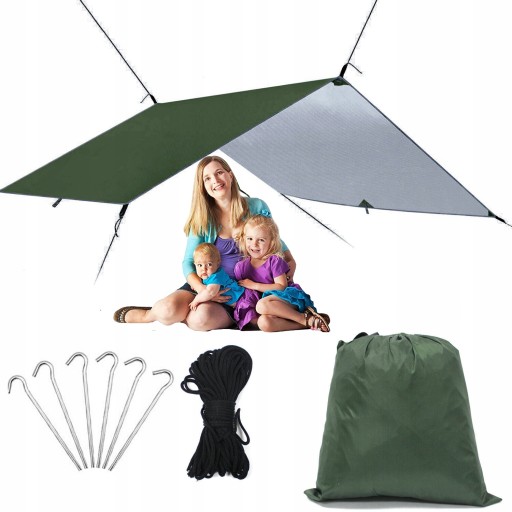 - Брезент намету виготовлений з поліефірної тканини з сріблястим покриттям з внутрішньої сторони.
