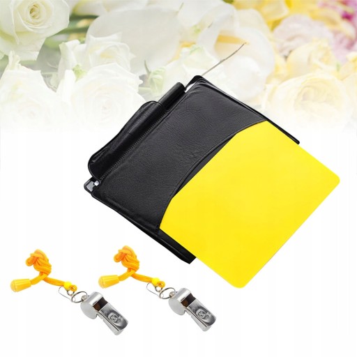 Цей предмет добре виготовлено з високоякісного матеріалу для практичного використання. В набір арбітра входять червона та жовта картки, олівець, кишенькова книжка з картками з результатами гри всередині та два металеві свистки зі шнурком. Це чудова ідея подарунка для любителів спорту та друзів, які займаються спортом.