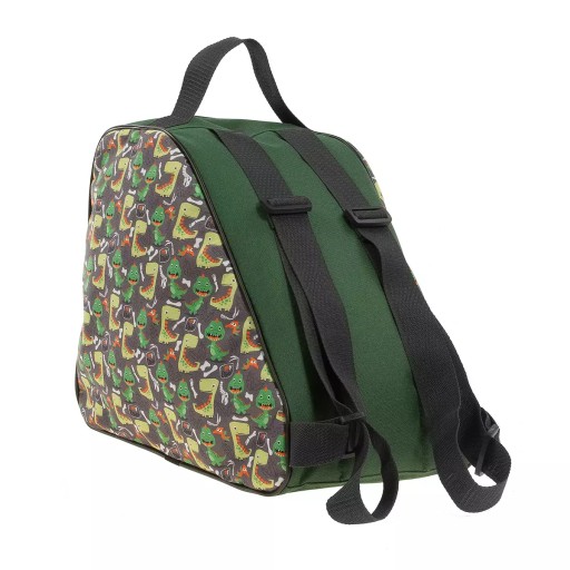 Сумка-рюкзак Dino для роликів/ковзанів - універсальний продукт. Наразі в оригінальних кольорах з тематикою. У нього ви також запакуєте протектори. Виготовлений з вологостійкого матеріалу. Має функціональний транспортний ремінь. Ви вирішуєте, як його носити.