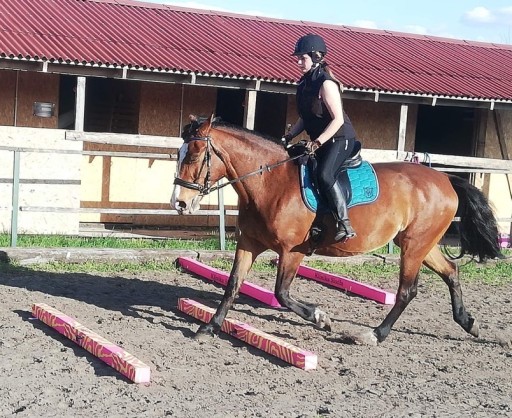 Яскраві кольори та візерунки на жердинах (які ми друкуємо самі) чудово задіюють обидві півкулі мозку коня, необхідні для розвитку правильних моделей рухів.