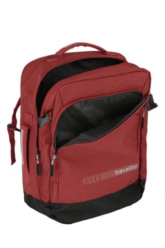 Travelite Kick Off 35L - надзвичайно практична, універсальна модель, яка поєднує в собі функції рюкзака та дорожньої сумки. Завдяки відповідним розмірам (50 х 37 х 20 см) і малій вазі (всього 0,9 кг) модель відмінно підійде в якості ручної поклажі різних авіакомпаній, в тому числі: Wizz Air, Ryanair, LOT, Lufthansa, Qatar Airways і easyJet. Ємність 35 літрів дозволяє легко помістити необхідні портативні аксесуари.