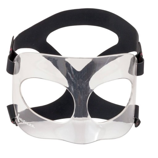 Легкий протектор для обличчя Mueller. Виготовлений із стійкого до розтріскування полікарбонату. Гарної форми, зручно лягає на обличчя. Не обмежує поле зору. М'які губки захищають від травм.
