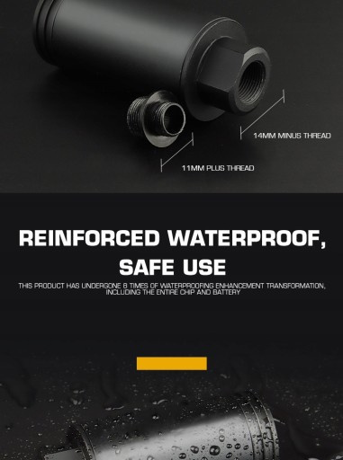 Високоякісний матеріал: корпус з алюмінієвого сплаву з вбудованим зарядним пристроєм USB,більш міцний і водонепроникний. Це ваш найкращий друг, щоб покращити ваш придушник і змусити ваші страйкбольні кулі світитися в темряві. Збільшити режим імітації Spitfire: перемикання між режимом спалаху та режимом Spitfire. Підтримує функцію відстеження підтримки до 35 PRS (2100RPM) Running fire. Ця мітка для страйкбольної зброї підтримує зелені світяться кулі або водяні бомби. Підходить для 10-мм пістолетів CCW і 14-мм автоматичних гвинтівок CW (різьба M14 CCW до M11 CW) Інтелектуальне енергозбереження: автоматичне ввімкнення/вимкнення живлення: автоматично вимикається після 40 хвилин простою. Світлодіодний індикатор живлення/індикатор заряду батареї. Вбудований літієвий акумулятор для зарядки через USB-кабель. Можна використовувати до 4 годин. Повністю зарядженого акумулятора вистачить на 2000 знімків. не працює? Акумулятор Week Up: підключіть зарядний кабель, щоб зарядити, потім натисніть кнопку перемикача та утримуйте її, доки індикатор кнопки перемикача не почне блимати зеленим, ви можете від’єднати зарядний кабель і відпустити кнопку перемикача. Ви можете повторно вставити зарядний кабель для зарядки, тоді акумулятор зможе перейти в нормальний робочий стан для роботи та використання. (Якщо індикатор не блимає, повторіть описані вище дії кілька разів, щоб розбудити батарею.)