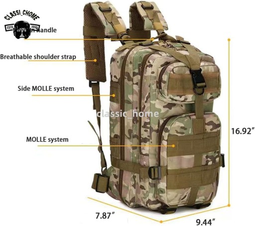 рюкзак classic_home ВОДОСТІЙКИЙ ТАКТИЧНИЙ РЮКЗАК 30 л 30 л чорний