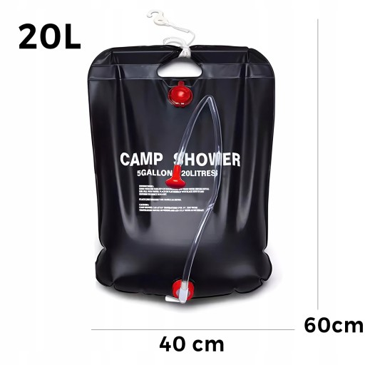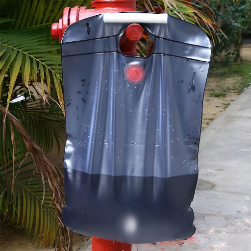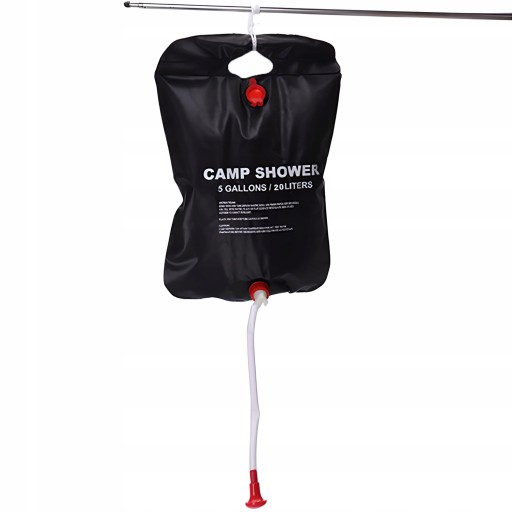 Сонячний/похідний душ - ідеальне рішення для людей, які проводять час на таборах, таборах, багаттях і т. д. З його допомогою можна не тільки готувати страви, які потребують води, але і використовувати його як предмет, під яким можна помитися. Завдяки матеріалу, з якого виготовлена сумка, вода в сумці нагрівається до 50°C завдяки сонцю. Сонячний душ можна встановити в будь-якому виступаючому місці, наприклад, на гілці дерева, трубі тощо.