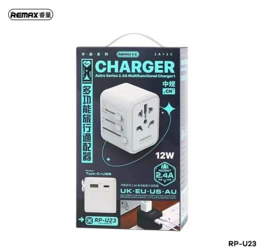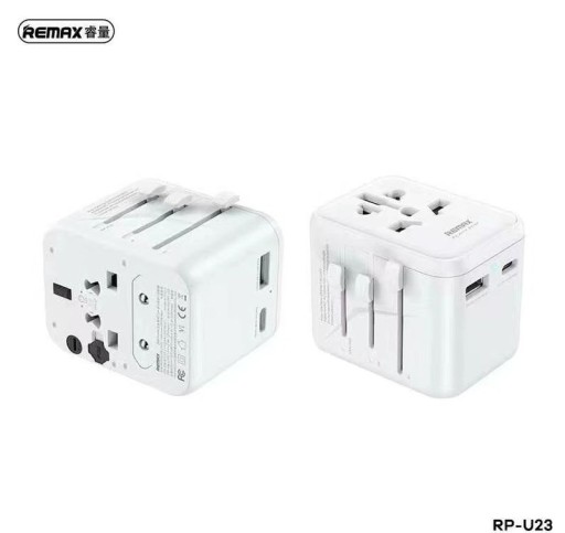 Новий адаптер / мережевий адаптер, що дозволяє підключати електричні пристрої з вилками з різних країн до електричних розеток, що використовуються в багатьох країнах, разом з універсальним подвійним зарядним пристроєм USB + USB типу C від відомої компанії Remax.
