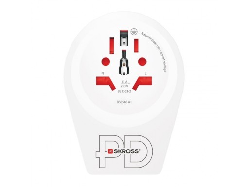 для всіх заземлених і незаземлених пристроїв (2- і 3-контактних), із вбудованим надшвидким зарядним пристроєм USB-C™ (Power Delivery) Британська вилка є стандартним джерелом живлення в понад 50 місцях по всьому світу. Перехідник USB-C™ PD зі світу до Великобританії дозволяє мандрівникам живити всі свої 2- та 3-полюсні пристрої в будь-якій із цих країн, одночасно заряджаючи USB-пристрій надшвидко через USB-C™ Power Delivery.