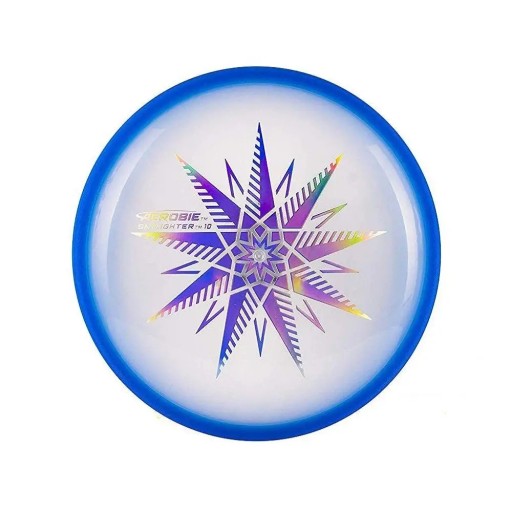 Диск для метання фрісбі AEROBIE Skylighter Blue гарантує задоволення навіть у темряві. Дві світлодіодні лампи чудово підсвічують центр і напівпрозорі краї літаючої тарілки, тому ви добре бачите її навіть у темряві. Aerobie Skylighter діаметром 24 см летить прямо і точно завдяки вдосконаленій конструкції обода. Ця функція підтримує підйомну силу в центрі літаючої тарілки протягом усього польоту, що значно покращує стабільність польоту.