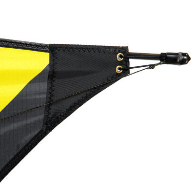 Суміш 4 мм скловолокна + 8 мм вуглецевого волокна забезпечує кращий компроміс між міцністю та легкістю. Карбонова передня кромка 8 мм. 2 натягувачі зі скловолокна 3 мм. Ручки з нержавіючої сталі зі зручною піною, червоного (ліворуч) і синього (праворуч). Кабель Dyneema 20 м (міцність 60 кг) з кольоровими маркерами для легкої установки. Продається в кейсі довжиною 90 см і шириною 15 см. Продається з запасною 1 карбоновою трубкою та 1 натяжником.