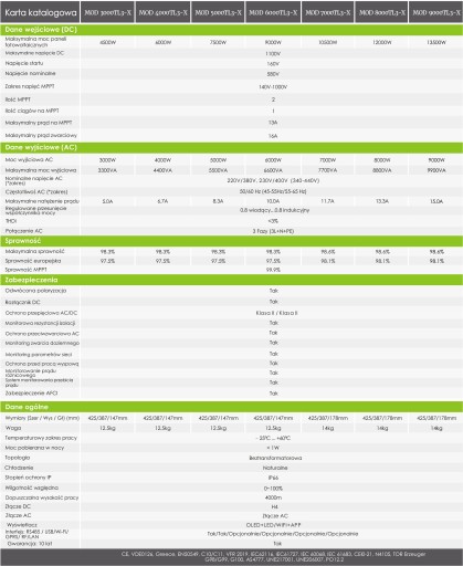 Фотоелектричний інвертор має численні сертифікати для польського ринку, які використовуються в установках. FoxESS має представництво в Польщі і гарантує доступність послуг.