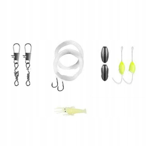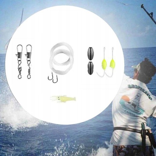 1 комплект аксесуарів для риболовлі (рибальський гачок * 2 волосіні * 1 свинцеве грузило * 2 наживки для креветок * 1 коннектор * 2 бобера * 2)