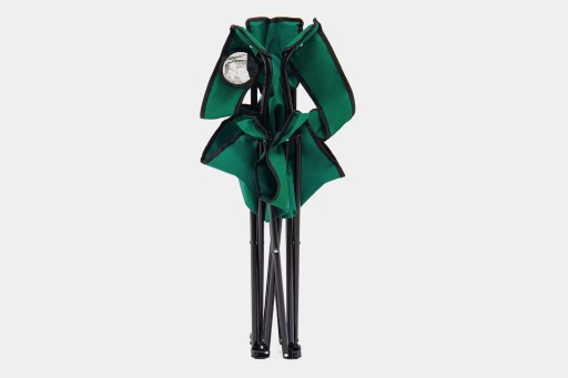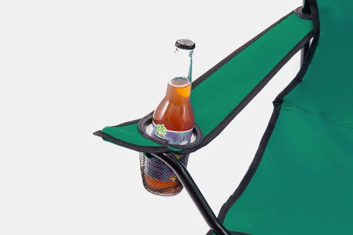 Розкладне зручне туристичне крісло з тримачем для пляшки зеленого кольору.