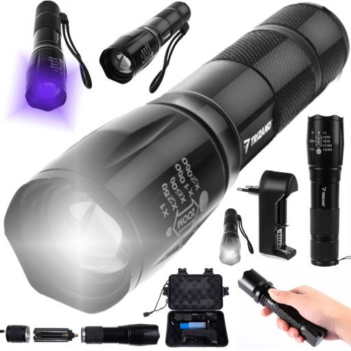 Світлодіодний ліхтарик дає потужне, довге світло, тому ви легко бачите те, що вас цікавить, у темряві. Ліхтарик може працювати в 2 різних режимах роботи, залежно від ваших потреб. Ліхтарик випромінює біле та ультрафіолетове світло. Завдяки можливості змінювати тип світлового пучка цей тактичний ліхтарик з легкістю висвітлить всю площу.