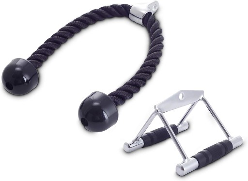 - Міцний трицепсовий трос і набір гребних рукояток оптимально підходять для оснащення силової стійки/фітнес-станції вашого домашнього тренажерного залу новими варіантами тренувань