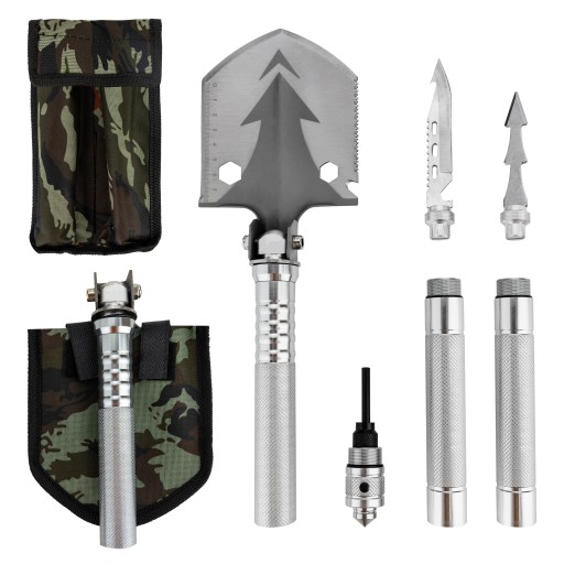 ✅ Завдяки своїм функціям його можна використовувати для підготовки місця для багаття або для заготівлі дров. Лопата виготовлена з міцного матеріалу, що забезпечує її довгий термін служби.