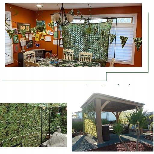 ✅Відтворення навколишнього середовища та камуфляж: наша зелена камуфляжна сітка ідеально підходить для військових тренувань, тренувань на відкритому повітрі, гри в пейнтбол, живої симуляції CS, військової підготовки, військових транспортних засобів, полювання, камуфляжних наметів.