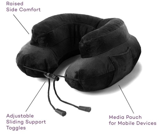 Завдяки 2 рівням голова тримається стабільно. Регульований шнурок дозволяє подушці розміститися навколо шиї користувача. Збоку чохла є невелика кишеня, в яку можна помістити, наприклад, навушники або телефон.