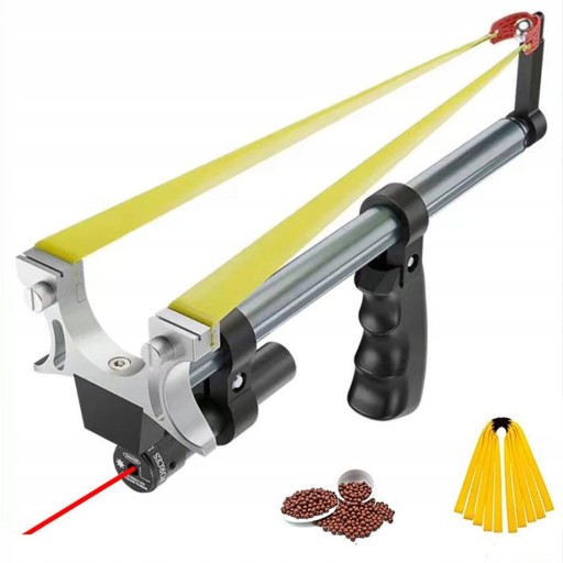 Високоякісні гумки забезпечують сильний натяг і хороше розташування, а також забезпечують стабільність і точність зап'ястя. Довге телескопічне вудилище дозволяє точно вразити ціль через приціл.
