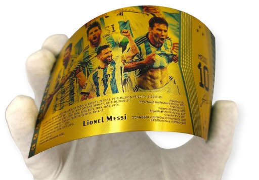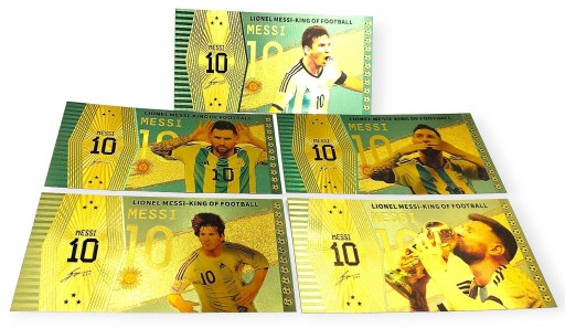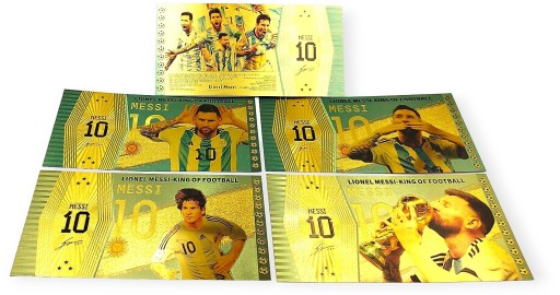 Гарний набір позолочених банкнот із зображенням Лео Мессі та збірної Аргентини.