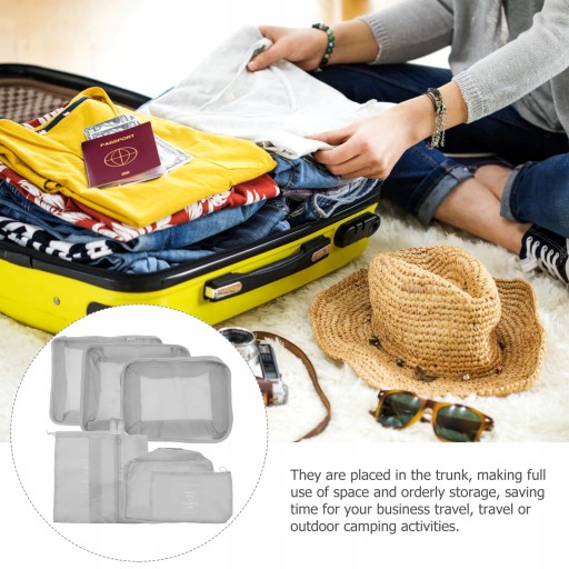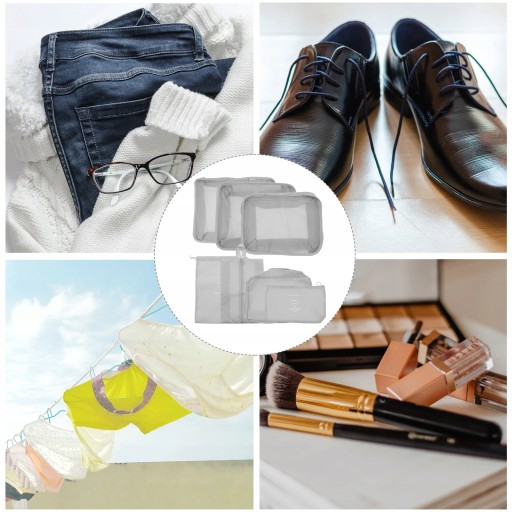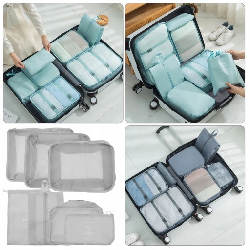 плоскі сумки, одна сумка для нижньої білизни, одна кишеня на шнурках і одна сумка для взуття.