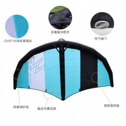 Креативні ручні надувні крила для більшості водних видів спорту, вейкбордингу, серфінгу, падлбордингу, скімбордингу, електроніки тощо. Поєднує вітрило для віндсерфінгу з борд-кайтом, щоб доповнити катання на хвилі та вітрильний спорт для чудових вражень від водних видів спорту. Високоякісна підкладка з ТПУ, поліестерова тканина та міцний каркас – щільний і міцний. Легкий і зручний у використанні – не потрібні ремені, важелі, щогли, латки або інші аксесуари Дизайн не закриває вам огляд, дозволяючи вам насолоджуватися безпечнішою та захоплюючою поїздкою Портативний і простий у зберіганні - після того, як він порожній, ви можете зберігати в безкоштовній сумці