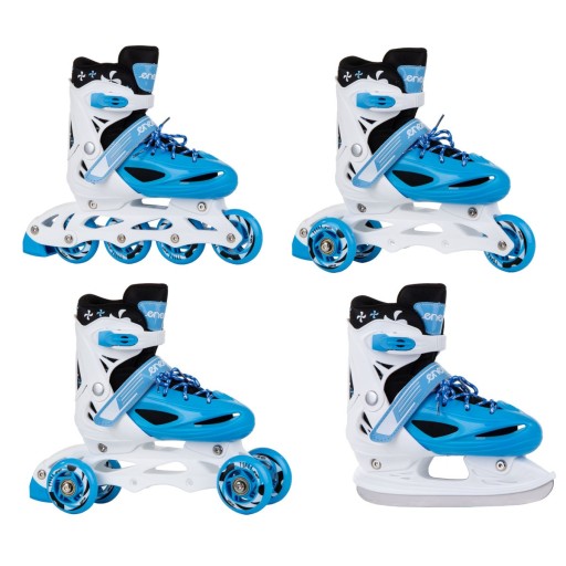 ⭐Роликові ковзани, ковзани, роликові ковзани або 3 SKATE - чудове рішення для людей, які люблять активно проводити час. Наш продукт ідеально підходить для цієї мети. Застосовувана в них система 4 в 1 дозволяє використовувати обладнання цілий рік, а також кілька сезонів за рахунок можливості регулювання розміру.