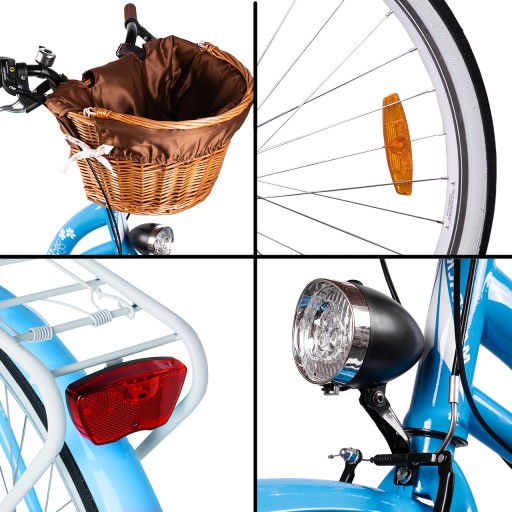КОШИК | СВІТЛІ | БАГАЖНИК | ВІДОБРАЖУВАЧІ | КРИЛА | НОГА | ДЗВІНОЧОК | РУЧКИ ПРОТИКЛИЗКЕ | КРИШКА ЛАНЦЮГА | ЗРУЧНЕ СІДЛО | ПЕДАЛІ ПЛАТФОРМИ | 6 ПЕРЕДАЧ