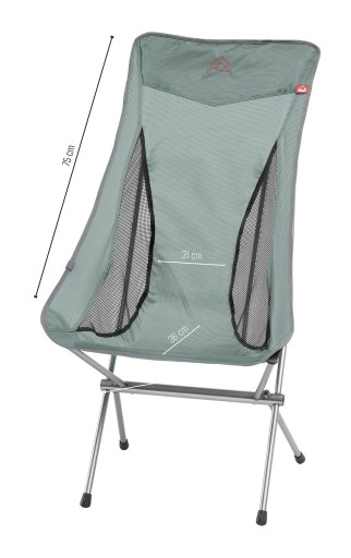 Крісло характеризується хорошою міцністю завдяки каркасу з трьох алюмінієвих сплавів і сидінню з поліестеру з хорошими параметрами. Спинка трохи вище, що чудово підтримує спину навіть під час тривалого відпочинку. Крім того, він оснащений повітряними сітчастими панелями, які забезпечують оптимальну циркуляцію повітря навколо спини. Він поставляється з транспортним чохлом, який також можна використовувати як функціональний органайзер. Для цього повісьте його на нижню частину конструкції крісла, щоб у вас був легкий доступ до необхідних речей. Ця модель сумісна з тримачем для пляшок Robens (продається окремо).