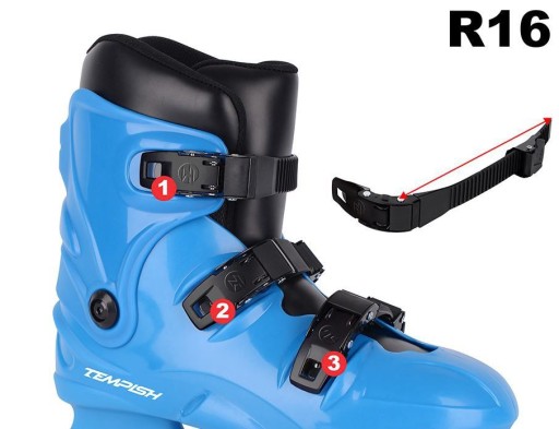 Набір запасних пряжок для моделей Rental R16. У набір входять 3 шт гвинти з гайками і 1 x металева пряжка з відповідником і пластиковою стрічкою довжиною 8-20 см, яку при необхідності можна вкоротити до потрібної довжини.