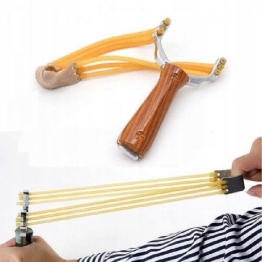 : високошвидкісна, міцна латексна гума з шести смуг, сильніша та руйнівніша. Стріляйте камінням, кульками, кульками з фарбою тощо. Ручка з АБС-пластику, верхня рама з суцільного лакованого алюмінію, верхня частина з натурального каучуку та шкіряна кришка. Портативний розмір, легко поміщається в кишені Ідеально підходить для розваг на природі