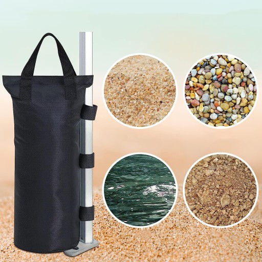 Баластний мішок для сонцезахисної навіси Кожен мішок можна використовувати для зберігання піску, каміння, гравію, снігу, бруду чи іншого вмісту як баластний мішок. Обважнювачі для ніжок намету. Спеціально розроблена система фіксації забезпечує надійне кріплення баласту до ніжок навісу. Мішки з піском для вуличного намету, легко кріпляться до ніжки каркаса