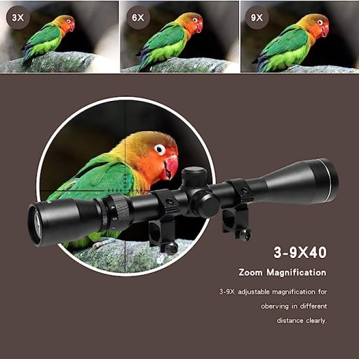 - Прицільна сітка далекоміра забезпечує швидку, просту та чудову стрільбу на різних відстанях. Зелене та червоне підсвічування, збільшення від 3X до 9X, діаметр лінзи 1,57" (40 мм)