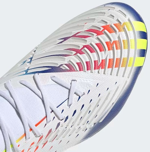 Спритність. потужність. КОНТРОЛЬ. Коли у вас є перевага, поле повне можливостей. Погляньте на прекрасну гру з абсолютно нової перспективи в Adidas Predator. Верх Zone Skin на цих футбольних бутсах має непомітні ребристі секції для різних типів контакту з м’ячем. Зважений Power Facet у передній частині стопи додає енергії вашим ударам. Адаптивний комір Adidas PRIMEKNIT тримає вас на місці.