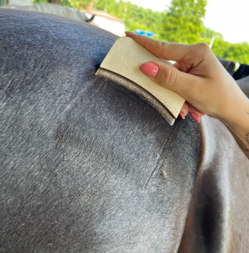 Лезо виготовлено з нержавіючої сталі, вирізаної лазером. Легко і безпечно видаляє випадає волосся і відмерлий підшерсток, не пошкоджуючи шерсть і не травмуючи ніжну шкіру. Він обмежує випадання, сприяє кровообігу шкіри та зміцнює волосяні фолікули.