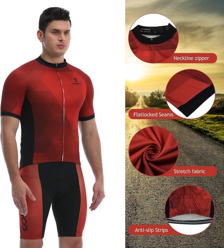 【М’який і зручний】 М’який і гнучкий поліестер забезпечує максимальний комфорт під час їзди. М'які та надзвичайно дихаючі штани зберігають ваше тіло прохолодою. На відміну від іншого велосипедного одягу, поверхня куртки розроблена з кількома вентиляційними отворами, щоб максимізувати тепловіддачу, дозволити холодному повітрю проникати в шкіру та вологу поглинати шкірою.