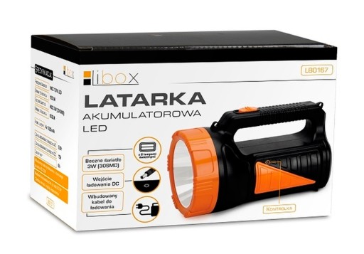 Щоб зарядити акумулятор, просто підключіть кабель живлення, що входить до комплекту, до ліхтаря, а потім до розетки 230 В.
