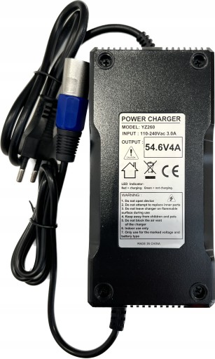 3. БЕЗПЕЧНА ЗАРЯДКА Вхідна напруга 100-240 В, 50/60 Гц, зарядна напруга 54,6 В, зарядний струм 2 А. Це забезпечує стабільну напругу, безпечну зарядку та тривале використання.
