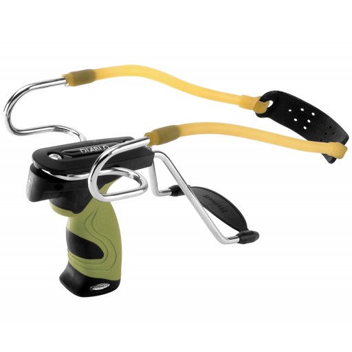 Професійна рогатка Diablo Slingshot не тільки надзвичайно потужна, але й стріляти з неї надзвичайно зручно. Система «Soft Touch» — це інноваційна конструкція ручки, яка м’яко та зручно лежить у руці, що дозволяє легко знімати годинами. Призначений для початківців і просунутих стрільців. Стабілізуюча опора значно підвищує точність. Стійкі до розтягування гумові кінці зі шкіряним кошиком.